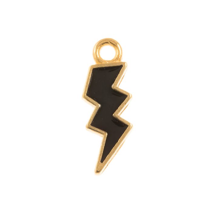 Bedel Enamel Bliksem (20 x 7 x 1.5 mm) Black-Goud (5 Stuks)