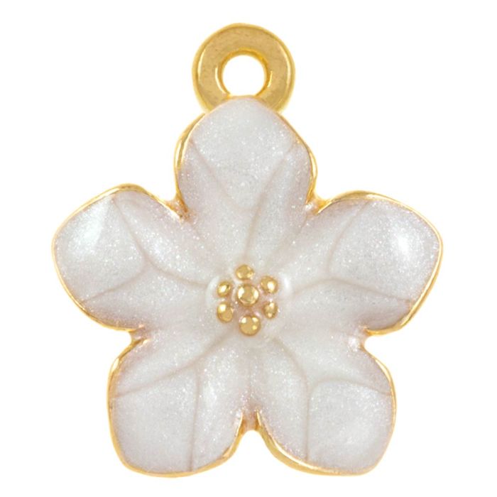Bedel Enamel Bloem (17 x 14 x 2.5 mm) Pearl White (3 Stuks)