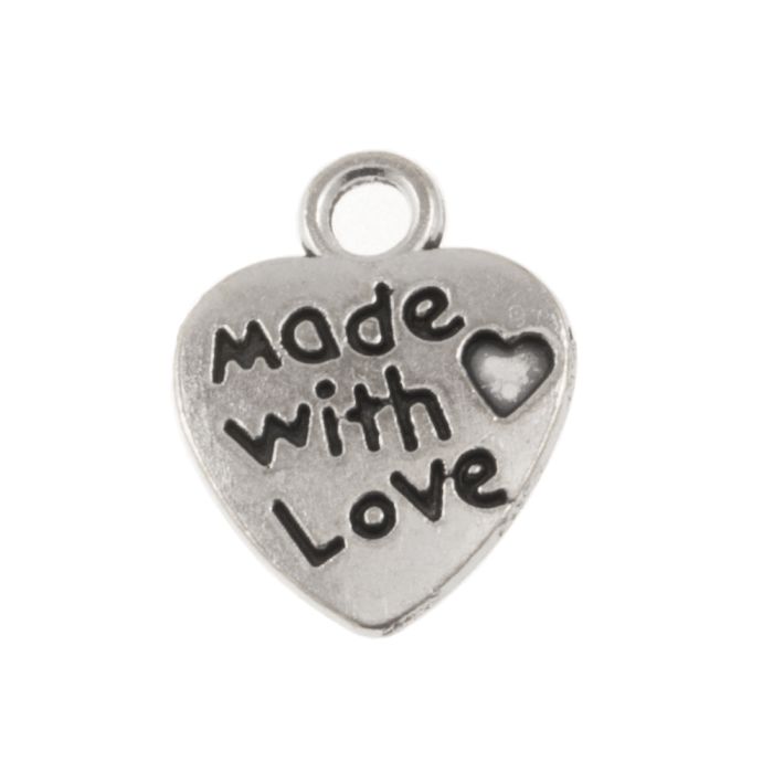 Bedel Hartje Made with Love (12 x 10 x 1 mm) Antiek Zilver (25 stuks)