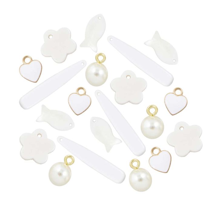 Bedelmix Acryl & Metaal (12 - 39 x 6 - 10 mm) White-Goud (20 Stuks)