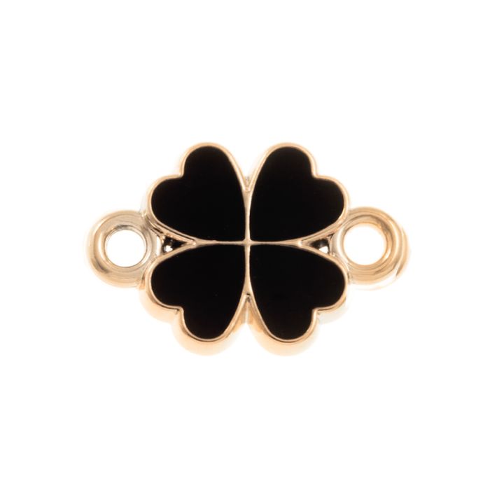 CCB Acryl Tussenstuk Enamel Klavertje (22 x 14.5 x 3 mm) Black-Goud (5 stuks)