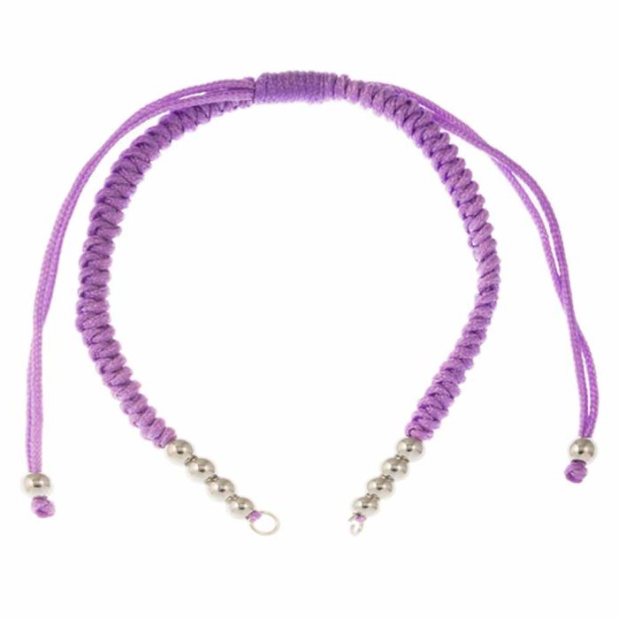 DIY Armband - Gevlochten Nylon Koord met Metalen Kralen Verstelbaar (26 cm) Purple - Antiek Zilver (1 Stuk)