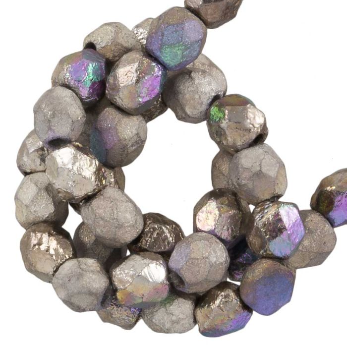 DQ Fire Polished Facetkralen (4 mm) Glittery Argentic (50 Stuks)