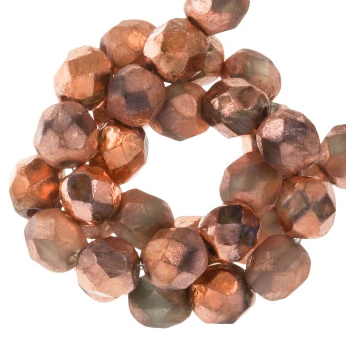 DQ Fire Polished Facetkralen (6 mm) Crystal Etched Capri Gold Full (25 Stuks)