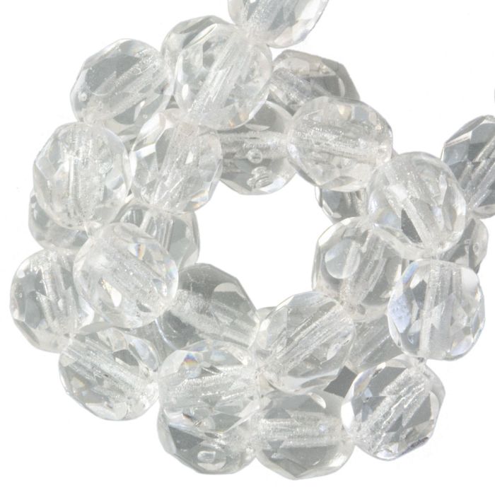 DQ Fire Polished Facetkralen (8 mm) Crystal White Shine (25 Stuks)