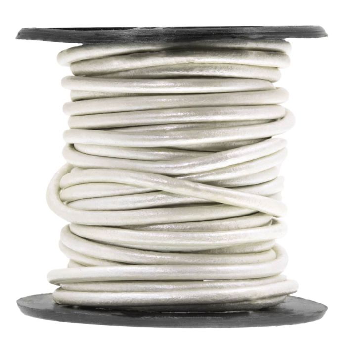 DQ Leer Rond (2 mm) Metallic Silver Pearl (5 Meter)
