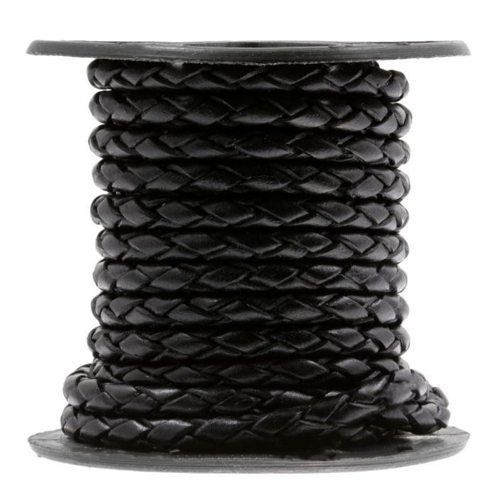 DQ Leer Rond Gevlochten (3 mm) Natural Dye Black (2.5 Meter)