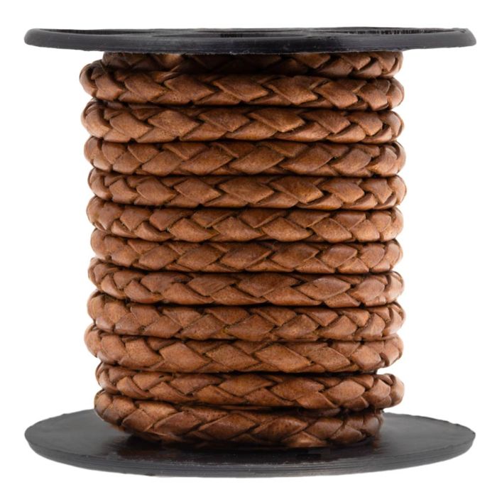 DQ Leer Rond Gevlochten (3 mm) Natural Dye Light Brown (2.5 Meter)
