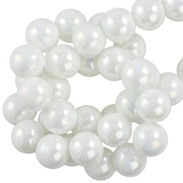 Glaskralen Electroplated (10 mm) Pearl White AB (39 Stuks)