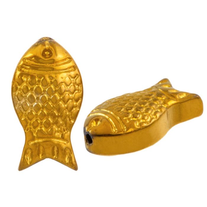Glaskralen Electroplated Vis (15 x 8 x 5 mm) Gold (5 Stuks)