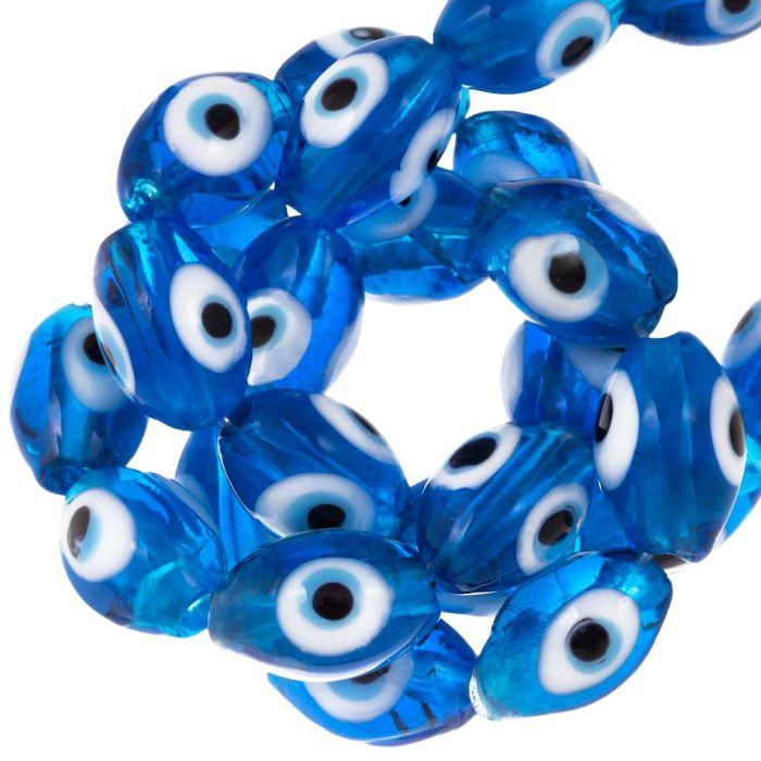 Glaskralen Evil Eye (13 x 7 mm) Blue (30 stuks)