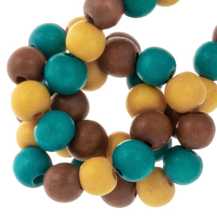 Houten Kralen (8 mm) Blue Yellow Mix (53 stuks)