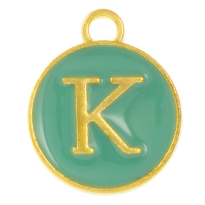 Initiaal Bedel Enamel Letter K (14 x 12 x 2 mm) Turquoise (1 Stuk)