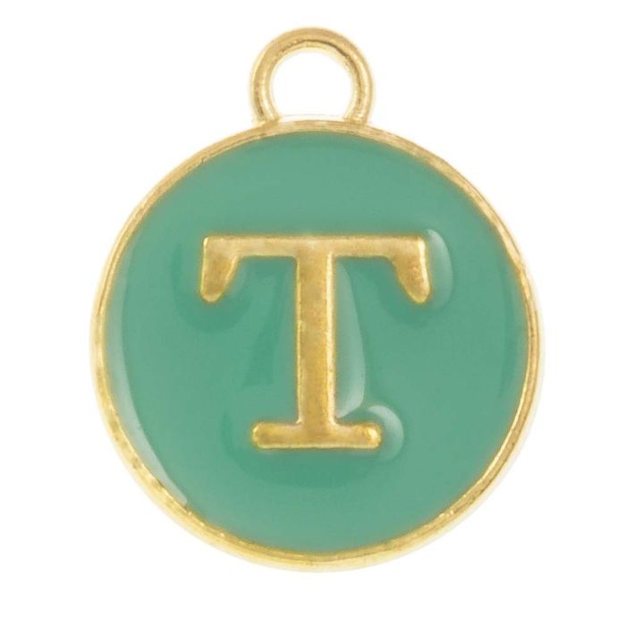 Initiaal Bedel Enamel Letter T (14 x 12 x 2 mm) Turquoise (1 Stuk)