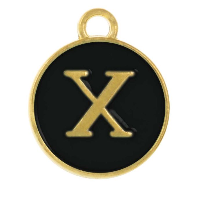 Initiaal Bedel Enamel Letter X (14 x 12 x 2 mm) Black (1 Stuk)