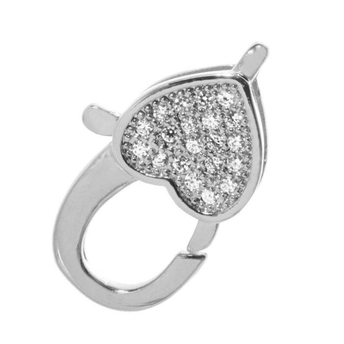 Karabijnsluiting Hart Zirkonia (17 x 10 x 5 mm ) Platinum (1 Stuk)