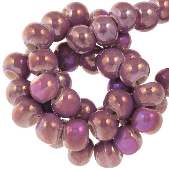 Keramiek Kralen Parelmoer Look (7 x 5 mm) Orchid (25 Stuks)