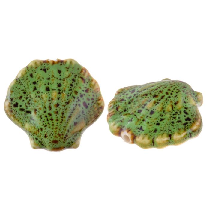 Keramiek Kralen Schelp (27 x 29 x 12 mm) Meadow Green (1 Stuk)