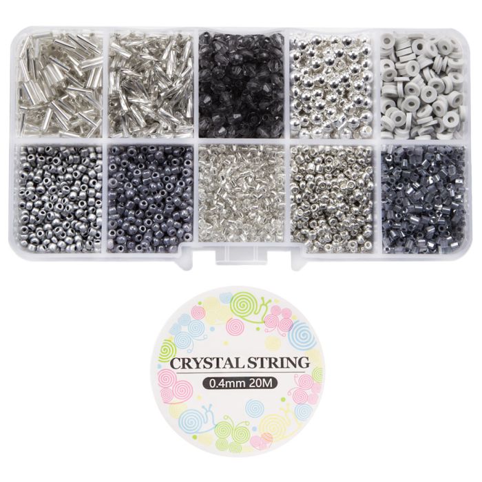 Kralendoos - Glas, Polymeer & Acryl Kralen (diverse maten) Mix Color Grey