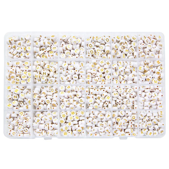 Kralendoos XL - A/Z Letterkralen (7 x 3.5 mm) White-Gold (72 kralen per letter)