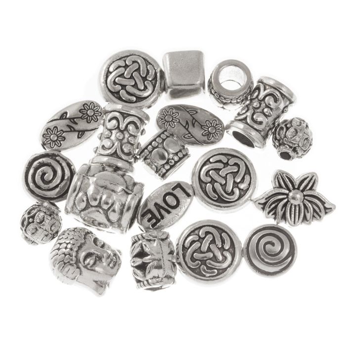 Kralenmix - Tibetaanse Metalen Kralen (Diverse maten) Antiek Zilver (15 gram)