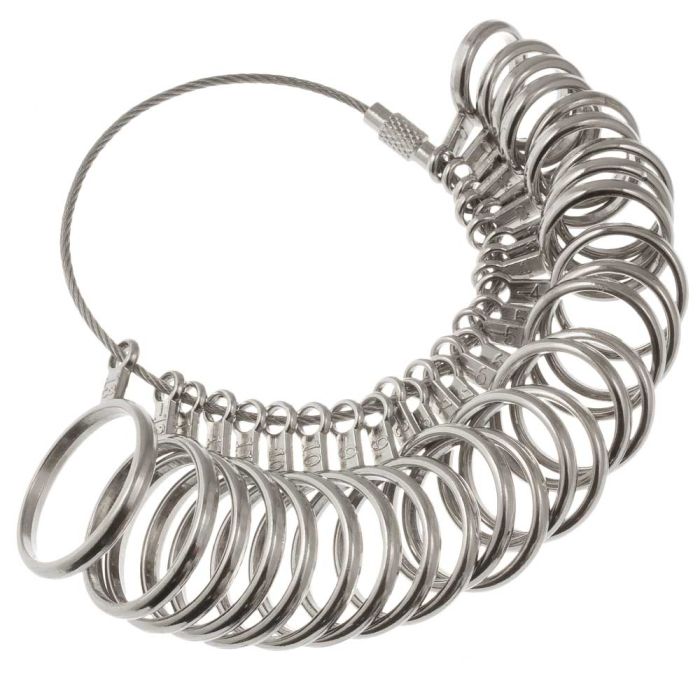 Bij het maken van ringen zal deze ringmeter goed van pas komen! Deze set bestaat uit 27 meetringen met een bereik van 12~23 mm. De meetringen bevatten een maatvoering van de Verenigde Staten (0-13).