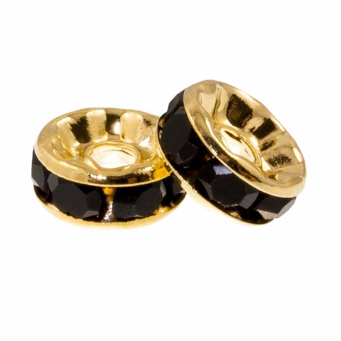 Rhinestone Spacer Kralen (6 x 3 mm) Black - Goud (10 Stuks)
