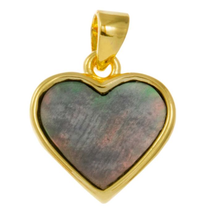 Schelp Hanger Hart (16 x 12 x 3 mm) Black Lip Shell-18K Gold Plated (1 stuk)