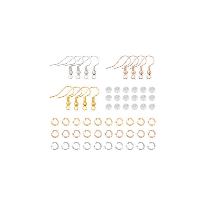 Set - Oorhaakjes met Buigringen en Oorbel Stoppers (18 mm) Antiek Zilver - Goud - Rose Goud (90 Stuks)