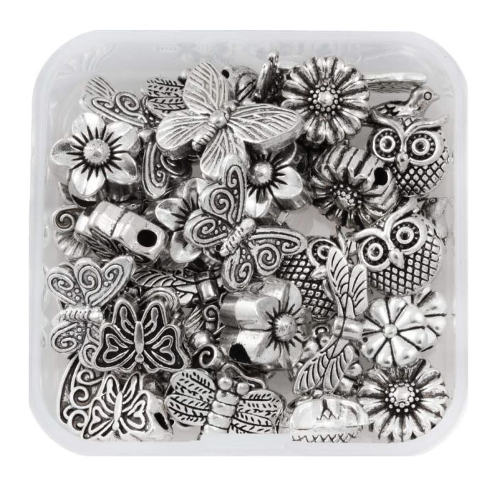 Set - Tibetaanse Metalen Kralen Divers (7 - 19 mm) Antiek Zilver (48 Stuks)