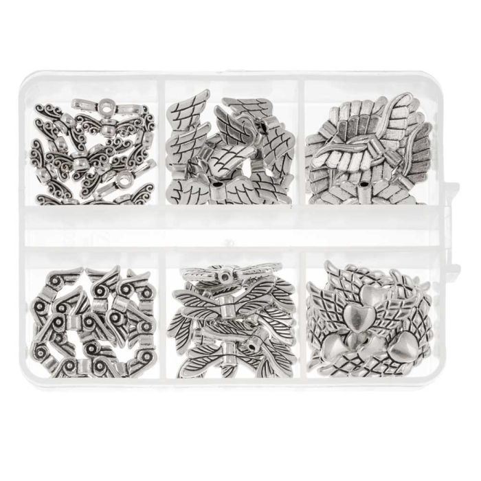 Set - Tibetaanse Metalen Kralen Engel Vleugels (14 - 24 mm) Antiek Zilver (60 Stuks)