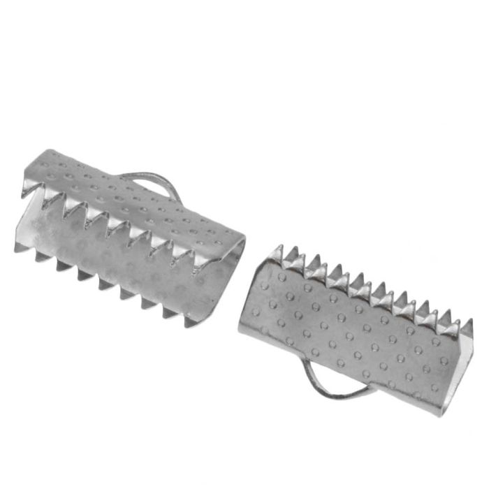 Met deze lintklemmen kun je jouw (platte) draad die wat breder van maat is, of bestaat uit meerdere strengen op een professionele manier afwerken. Stop het draad in de klemmetjes en knijp de zijdes dicht zodat het draad goed blijft zitten. Aan het oogje van de lintklem kun je een buigring bevestigen die weer verbonden is met je slotje.Ons stainless steel is allergievrij en je hebt gegarandeerd een langdurige kleurbehoud.