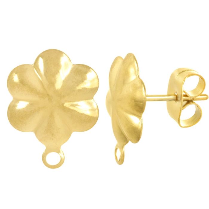 Stainless Steel Oorstekers Bloem met Sluiting (13.5 x 10 mm) Goud (4 Stuks)