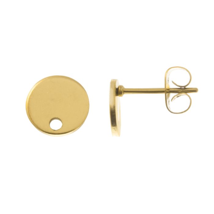 Stainless Steel Oorstekers Plat Rond met Sluiting (8 x 1 mm) Goud (4 Stuks)