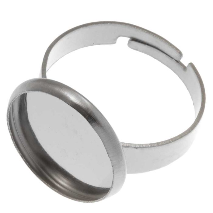 Stainless Steel Verstelbare Ring (14 mm) Antiek Zilver (5 Stuks)
