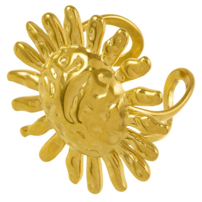 Stainless Steel Verstelbare Ring Bloem (Diameter 17.6 mm) 18K Gold Plated (1 Stuk)