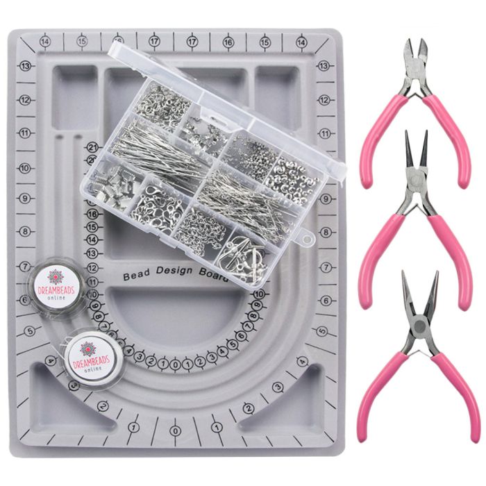 Startpakket Antiek Zilver voor sieraden maken. Met een startpakket kun je zelf eenvoudig mooie sieraden samenstellen. Dit XL startpakket bevat belangrijke benodigdheden zoals een tangenset, kralenbord en zilverkleurige onderdelen. Een startpakket is ideaal voor als je net begint met sieraden maken. De onderdelen zijn van allergievrij metaal met een uitstekende prijs-kwaliteit verhouding.