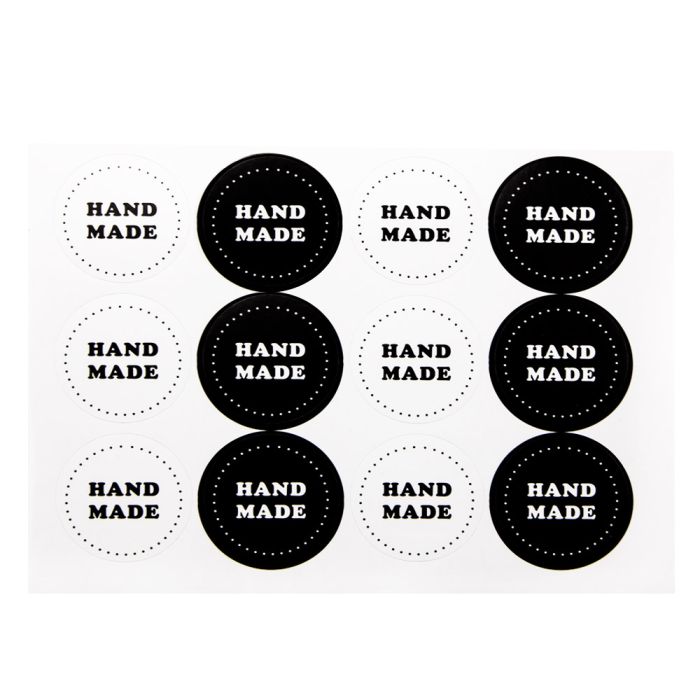 Stickervel Ronde Stickers - Handmade (3.5 cm) Black-White (12 stickers)